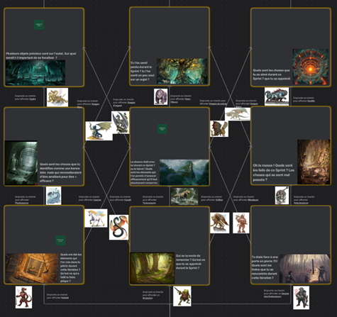 À la fin de la collecte, vous pouvez créer un résumé visuel des activités sur le board. Chaque participant voit le parcours de son personnage, les chemins explorés et les épreuves rencontrées.