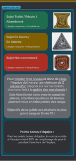 Pour rendre l’expérience plus stimulante, n’hésitez pas à intégrer des pertes de valeur lorsque certaines actions ne sont pas résolues ou lorsque des problèmes identifiés persistent sans avoir été corrigés.