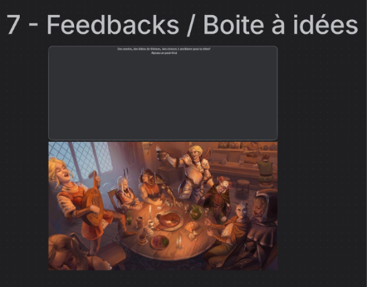 Pour renforcer le côté ludique, transformez les actions en quêtes liées au thème JDR, avec des récompenses (pièces, objets ou points). Cela stimule l’engagement et permet de challenger l’équipe pour atteindre des objectifs de progression collective.