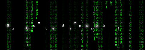Sur chaque image nous dessinons un caractère opaque à la fin de toutes les traînes (donc un caractère par colonne). Comme l’image précédente n’a pas été effacée les caractères précédents demeurent visibles.