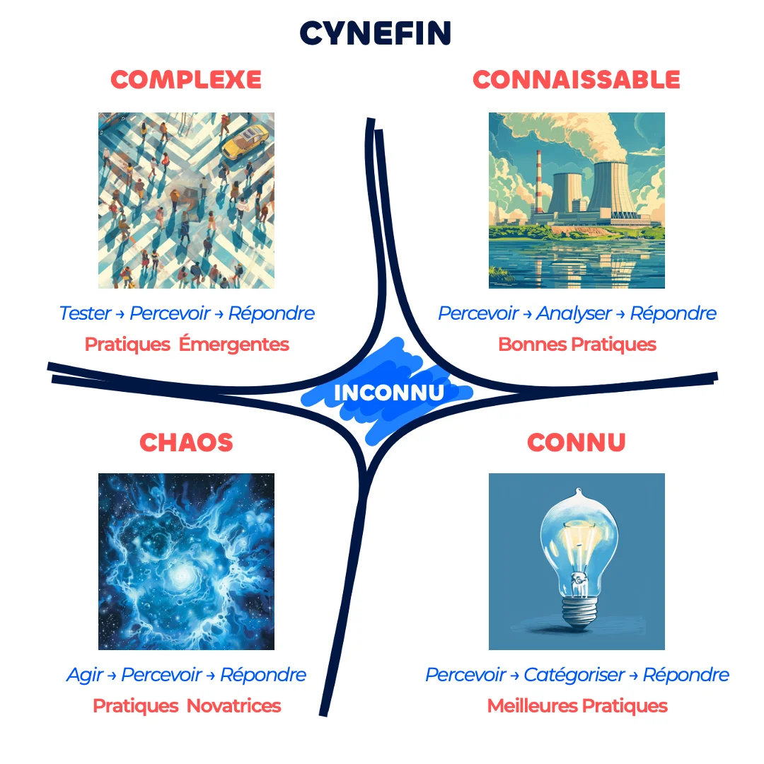 Cela étant, l’expérience, le test et l’adaptation restent les meilleurs moyens d’action en environnement complexe. Ils permettent la construction d’une réaction appropriée quand un environnement chaotique nécessitera avant tout de la stabilisation et du contrôle avant de pouvoir réagir.