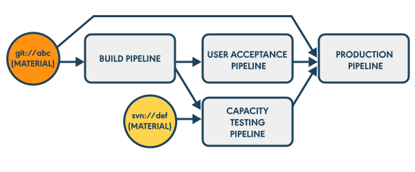 Voici un exemple, tiré de la documentation GoCD qui illustre ces 2 concepts :