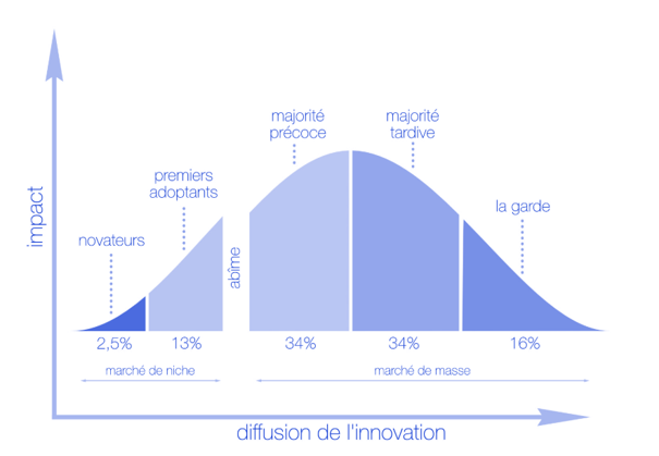 Un autre éclairage de la situation pourrait venir de la courbe d’adoption de l’innovation qui représente la loi d’Evrett Rogers :