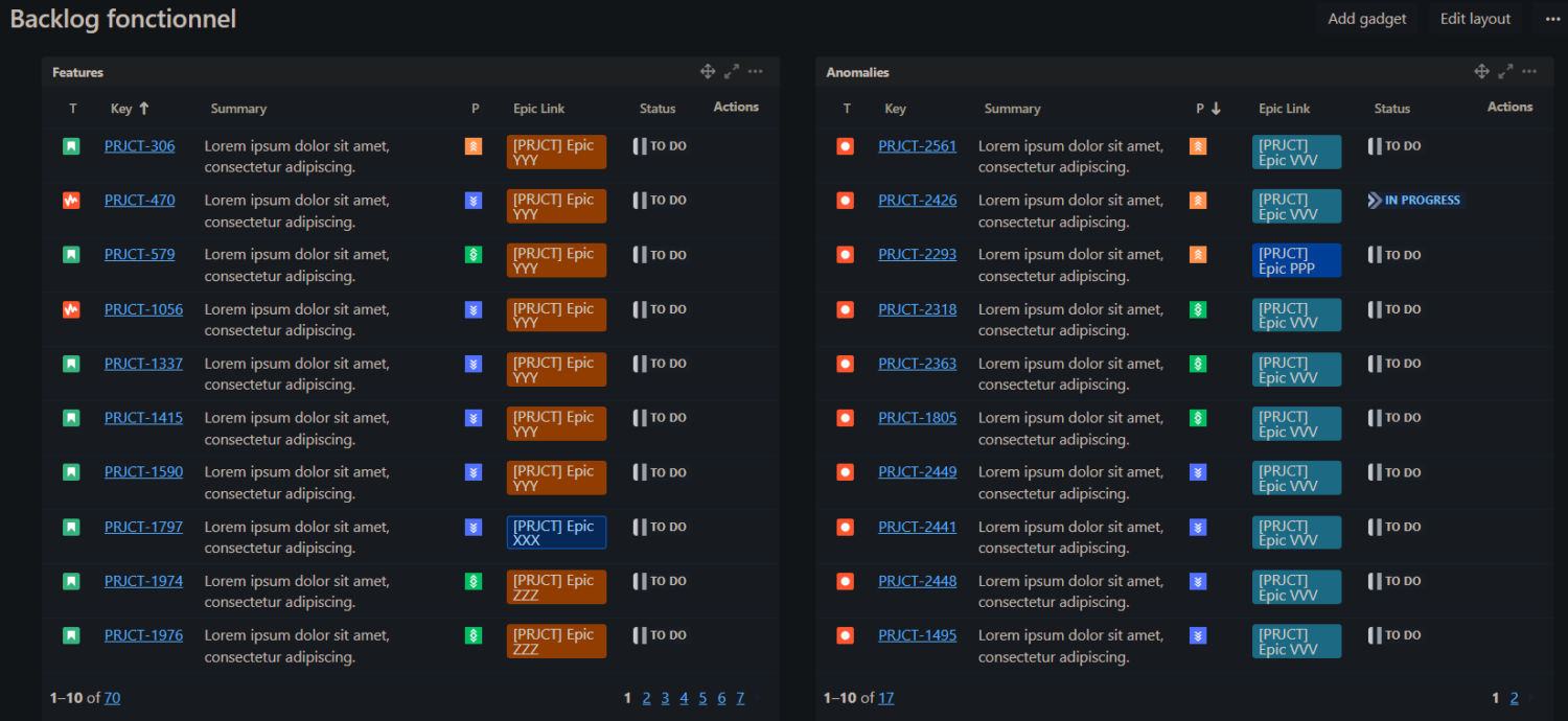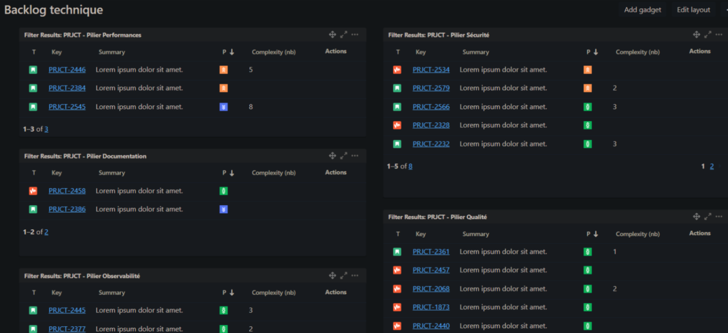 1. Séparez clairement les backlogs (fonctionnel et technique) et appuyez-vous sur un système efficace de labels ou de thématiques (sécurité, performance, UX, etc.) pour améliorer la lisibilité et la priorisation.