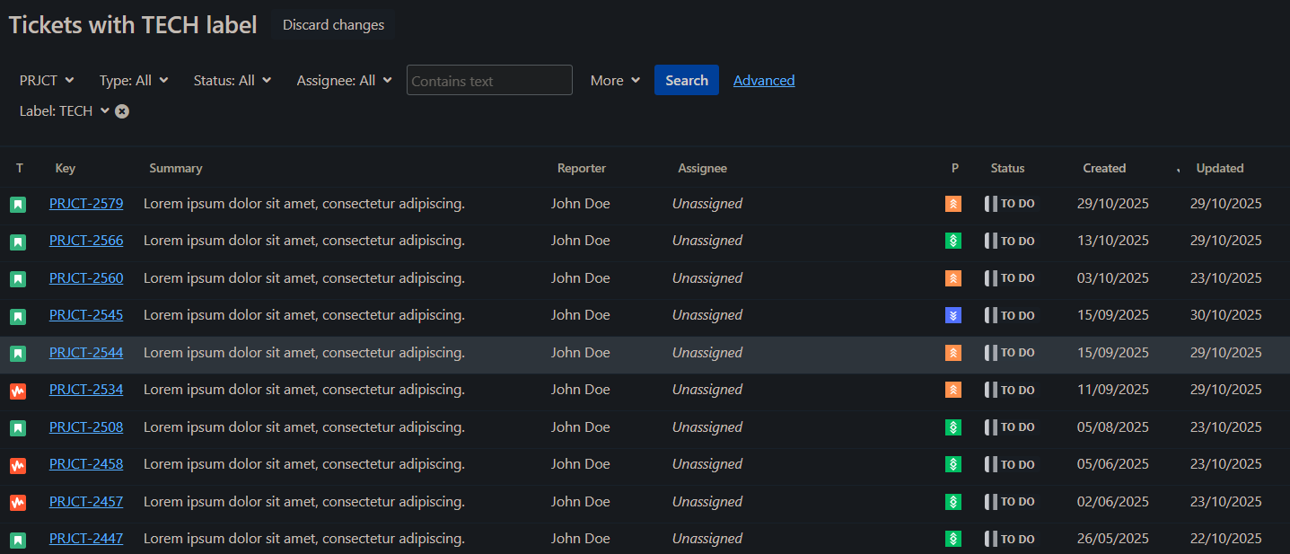 L’idée est donc de séparer ces tâches et d’ajouter un label “TECH” à tous les tickets techniques.